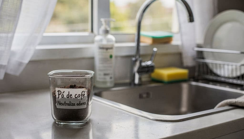 - Deixe um pote de pó de café ou grãos sobre a pia