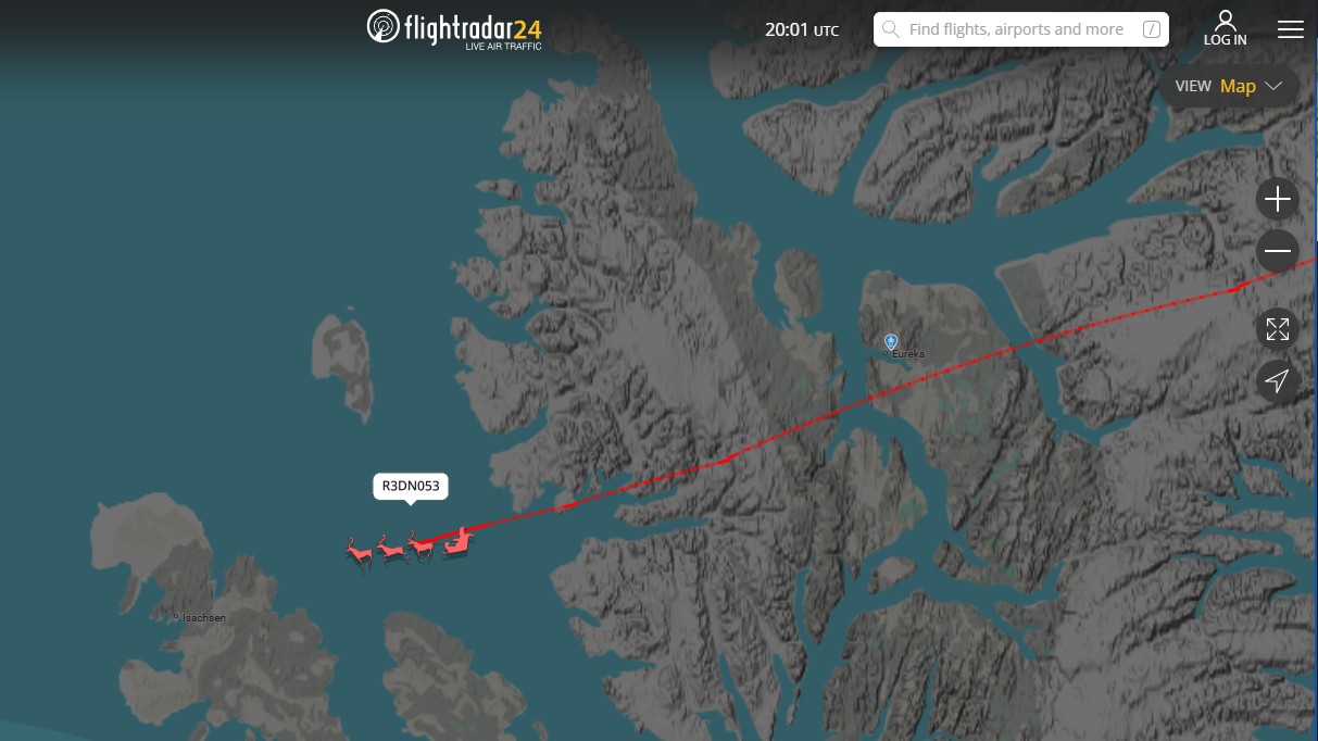 A plataforma de monitoramento de voos FlightRadar24 também conta com um serviço chamado “Santa tracker”, que “acompanha em tempo real” a viagem do trenó do Papai Noel pelo mundo, da mesma forma que exibe as trajetórias dos aviões e aeronaves.
