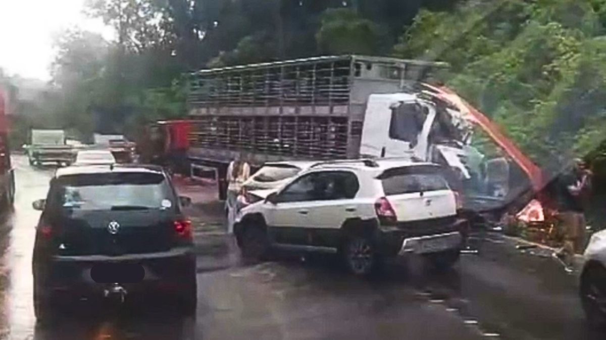 Pelo menos quatro veículos se envolveram no acidente na tarde desta segunda-feira (29) em Cordilheira Alta, no Oeste do estado