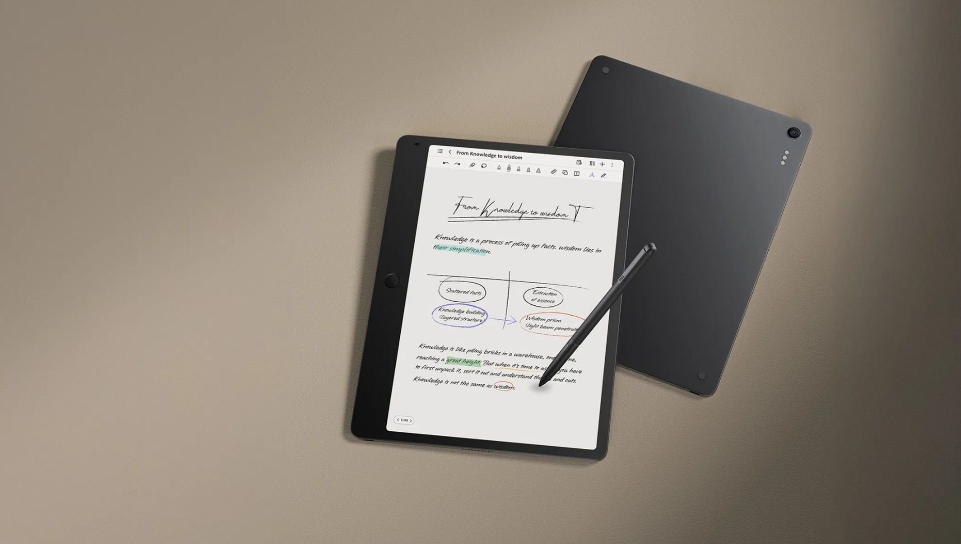 O tablet conta ainda com diversas ferramentas de inteligência artificial (IA), como conversão de escrita cursiva ou áudio para texto digital, tradução ou resumo em tempo real e um assistente de produção de conteúdo.