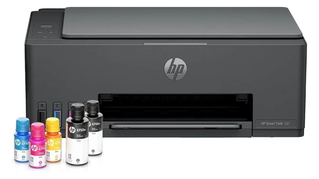 A HP Smart Tank 581 é uma impressora multifuncional com tanque de tinta integrado que reúne impressão, cópia e scanner em um único equipamento. Ela utiliza tecnologia de jato de tinta e consegue trabalhar com textos e imagens em preto e em cores, com resoluções configuráveis para saída por computador.