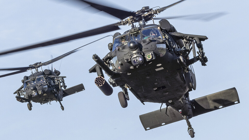E mais: se há algo que distingue os helicópteros do 160th SOAR é sua obsessão pela sobrevivência. O MH-60M DAP é envolto por uma verdadeira bolha de autoproteção que integra alertas de mísseis por infravermelho, radar e laser, sistemas de guerra eletrônica ativa, dispensadores de flares e chaff, e contramedidas a laser direcionais como o sistema CIRCM, capaz de cegar os buscadores de mísseis guiados por infravermelho em pleno voo.
