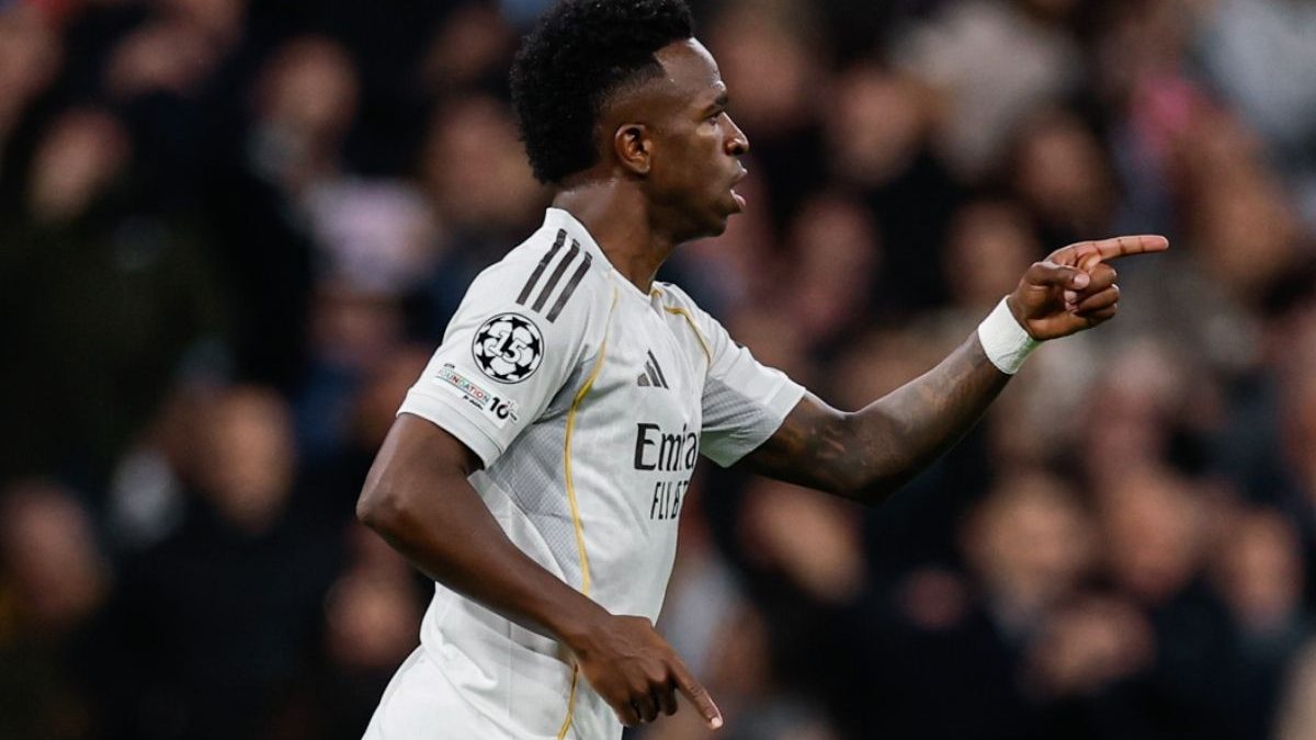 Com Virginia no Bernabéu, Vini Jr. perde gol inacreditável em jogo do Real Madrid